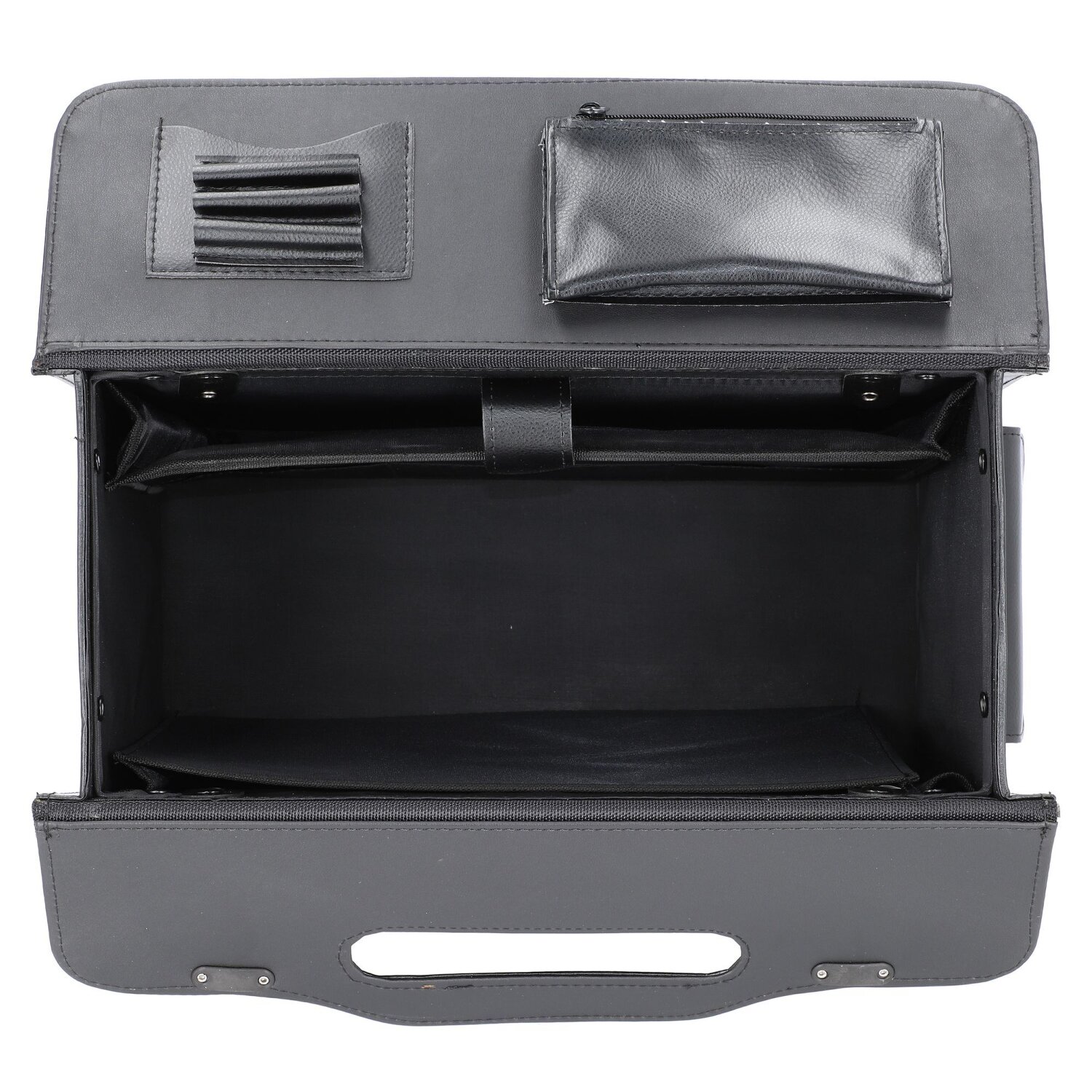 • Extras: Tragegriff, Stiftelaschen, Fächer für A4 Unterlagen, Bodennägel