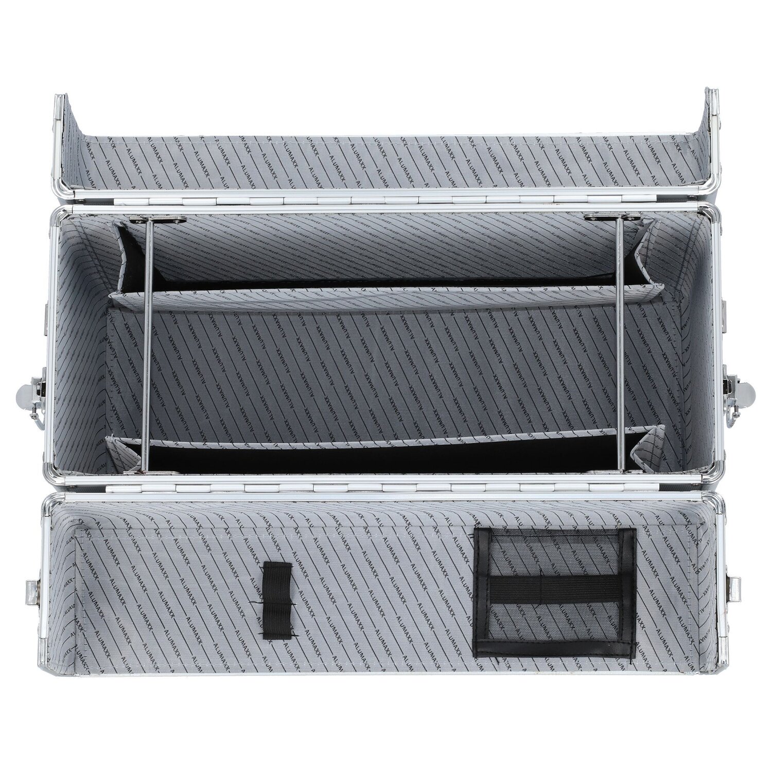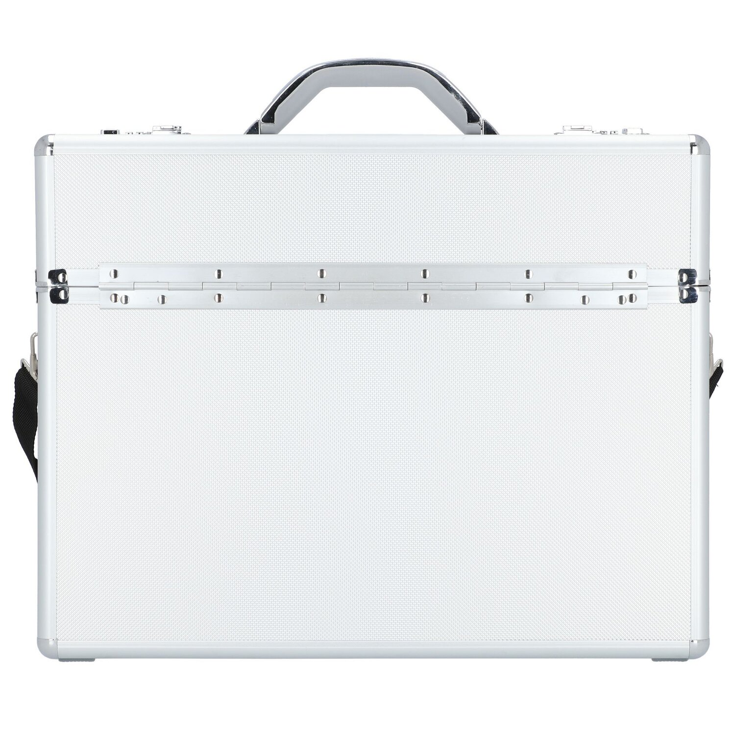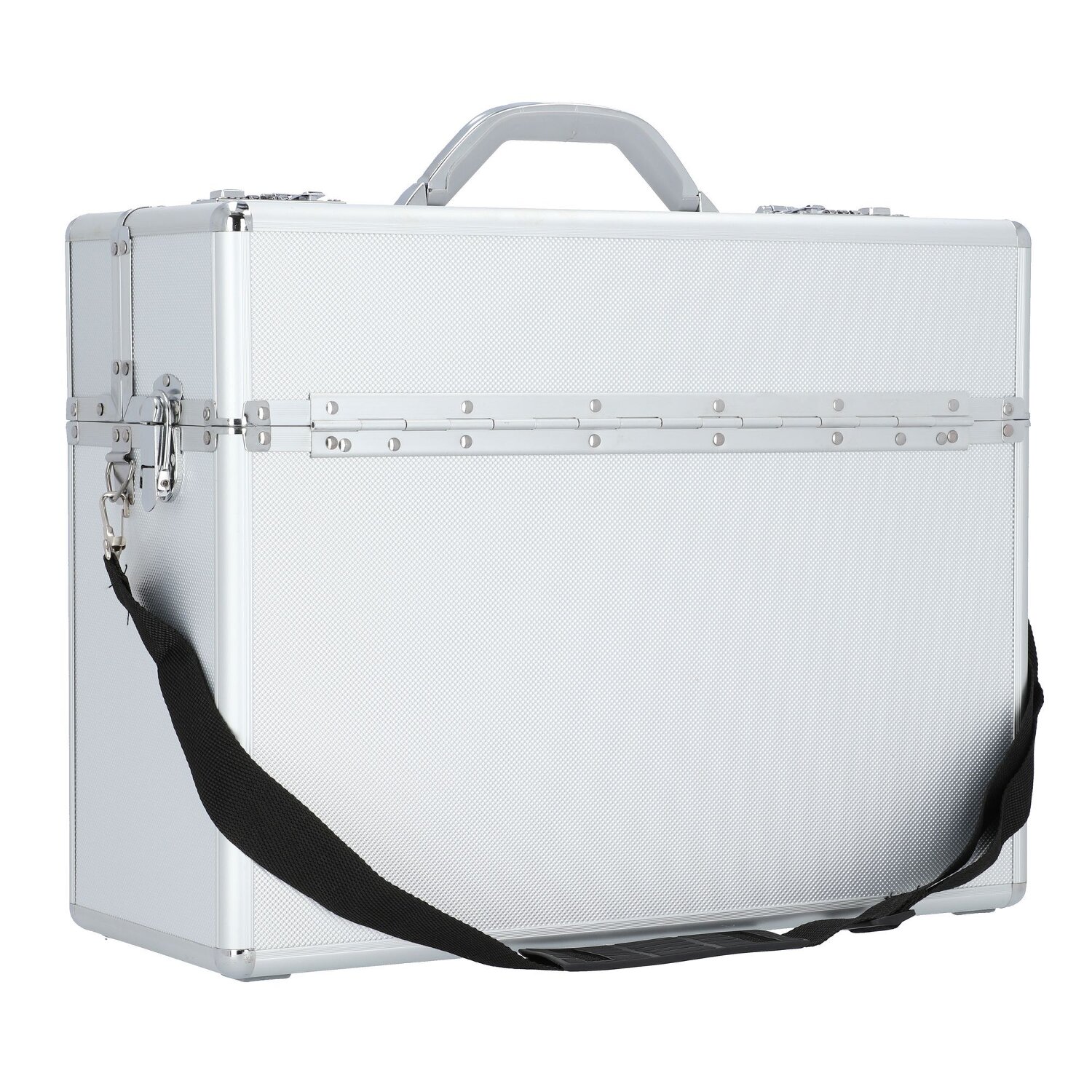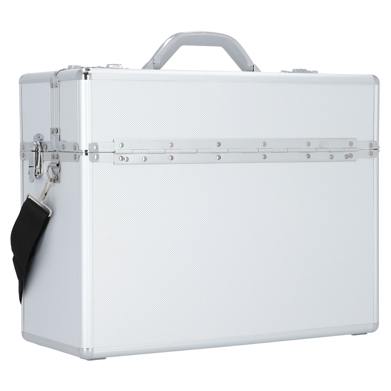 Robuster Pilotenkoffer von Alumaxx aus Aluminium mit abnehmbarem, längenverstellbarem Umhängeriemen. Der Koffer bietet viel Platz für ihre Unterlagen und ihre Arbeitsutensilien. Außerdem ist er mit einer Hängeregistervorrichtung und zwei weiteren Fächern für Unterlagen ausgestattet.