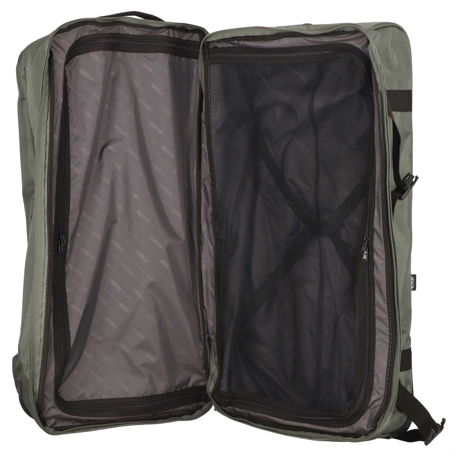 - Ausstattung: Wäschefach, Tasche(n) außen, Reißverschlussfach, Netzfach, Kreuzpackgurt, arretierbarer Griff