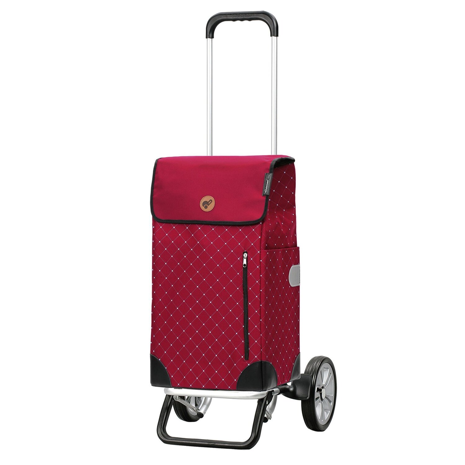 - Ausstattung: Tasche(n) innen, Tasche(n) außen, Handyfach, arretierbarer Griff, Alurahmen
