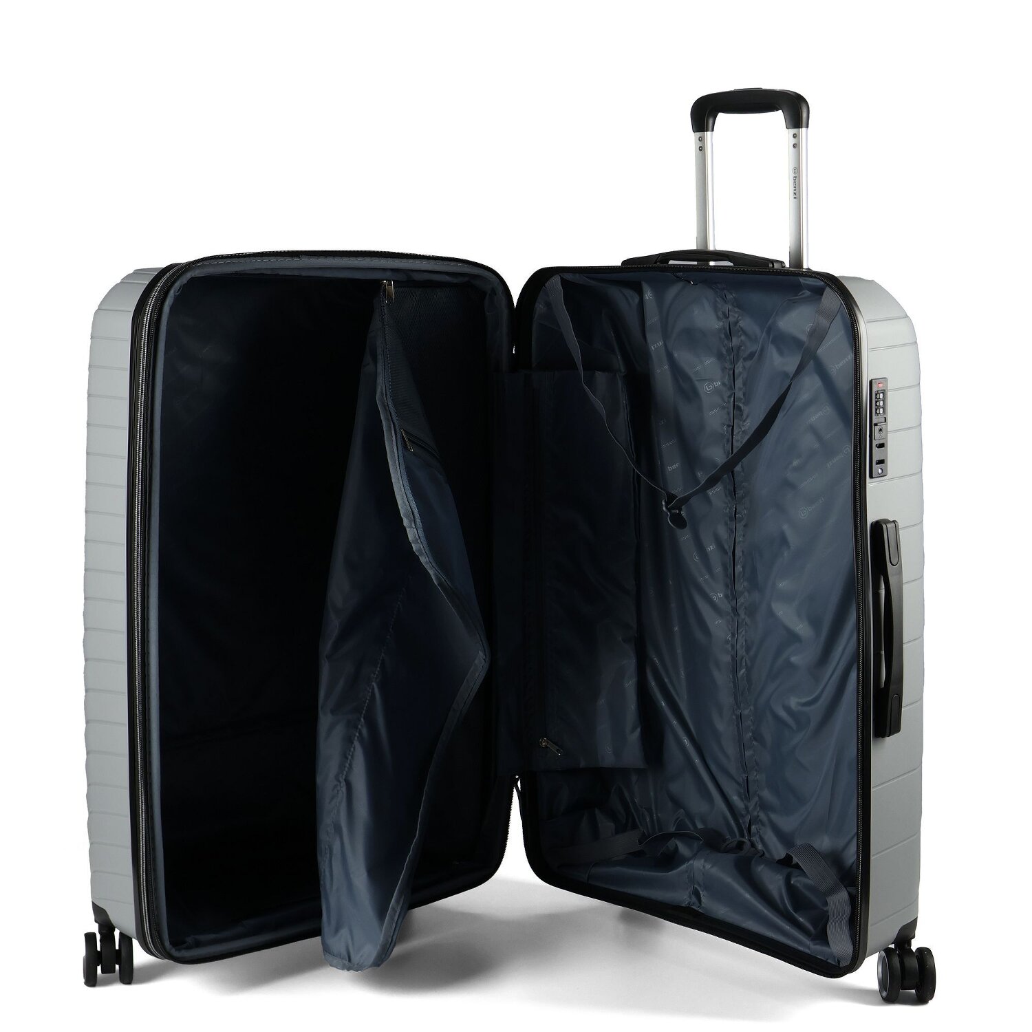 - Ausstattung: Wäschefach, Reißverschlussfach, Netzfach, Kreuzpackgurt, Dehnfalte, arretierbarer Griff