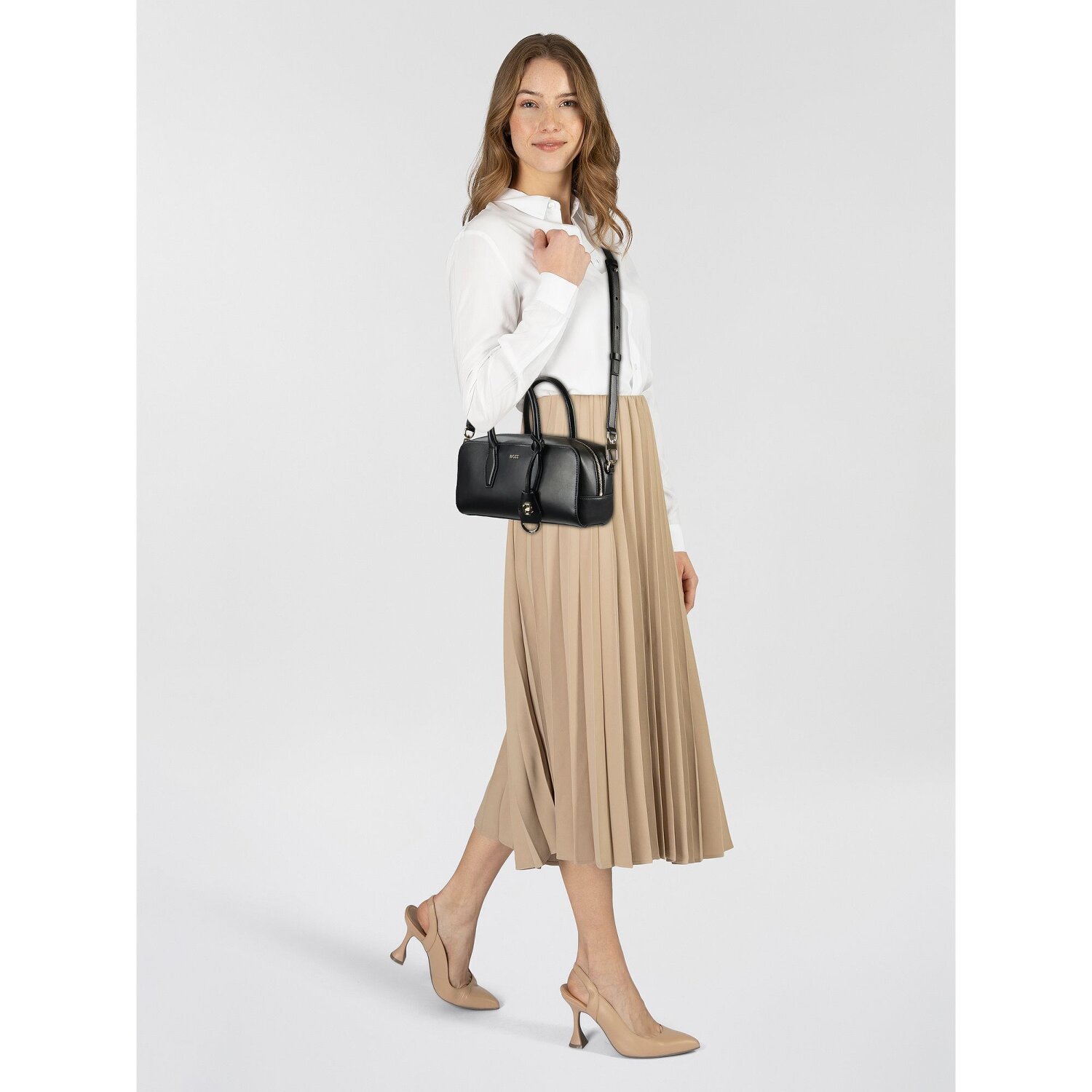 Eleganz und Stil treffen auf Funktionalität in Boss' Numah Serie. Diese feine Damenhandtasche, gefertigt aus hochwertigem Lederfaserstoff, bietet eine angenehme Haptik und besticht gleichzeitig durch eine robuste Beschaffenheit. Ein übersichtliches Hauptfach mit praktischem Reißverschluss bietet genügend Platz für Ihre Essentials. Das zusätzliche Reißverschlussfach hält wichtige Kleinigkeiten sicher und gut erreichbar. Komfortables Tragen steht an erster Stelle, daher ist der Umhängeriemen abnehmbar und individuell einstellbar, während der kurze Hauptriemen einen bequemen Handgebrauch ermöglicht. Lassen Sie sich die Chance nicht entgehen, Ihre Garderobe mit dieser schicken Tasche aufzuwerten!