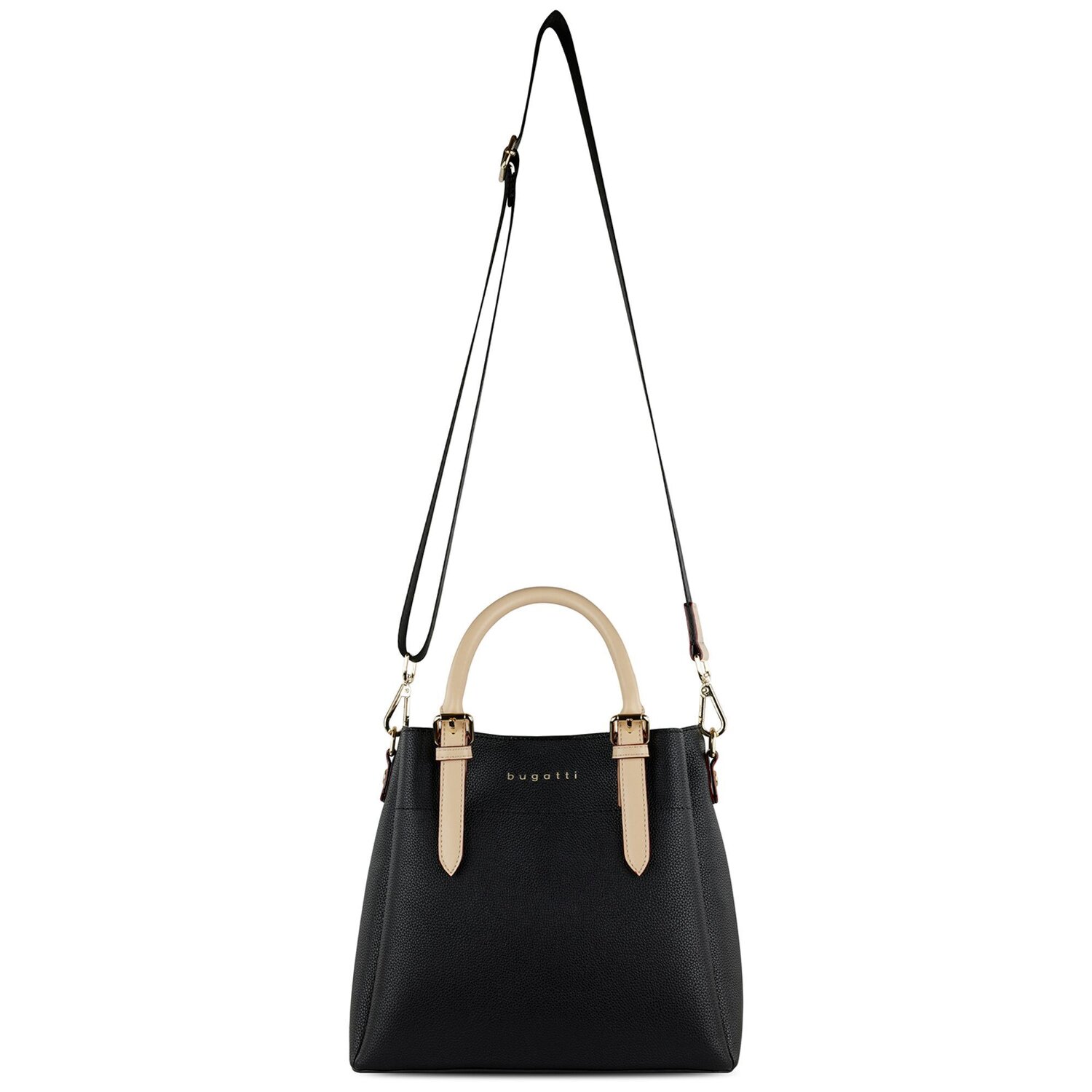 Schöne Henkeltasche von Bugattii. Die Tasche dient mit einem großem Hauptfach in welchem ein zusätzliches Reißverschlussfach befindet. Zusätzlich ist ein längenverstellbarer und abnehmbarer Umhängeriemen enthalten. Der perfekte Begleiter für den Alltag.