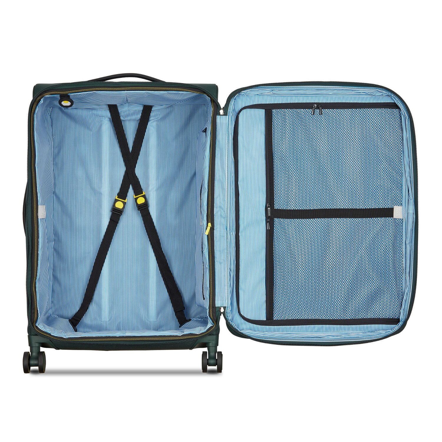 - Ausstattung: Wäschefach, Tasche(n) außen, Netzfach, Kreuzpackgurt, Dehnfalte, arretierbarer Griff
