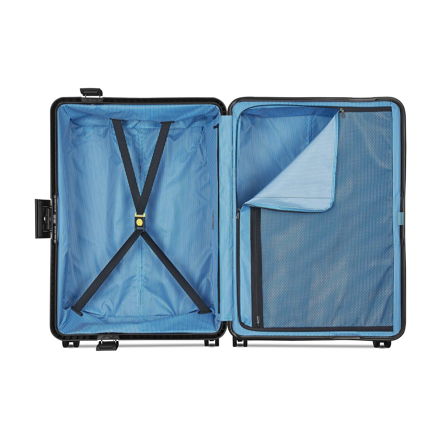 - Ausstattung: Wäschefach, Netzfach, Kreuzpackgurt, arretierbarer Griff