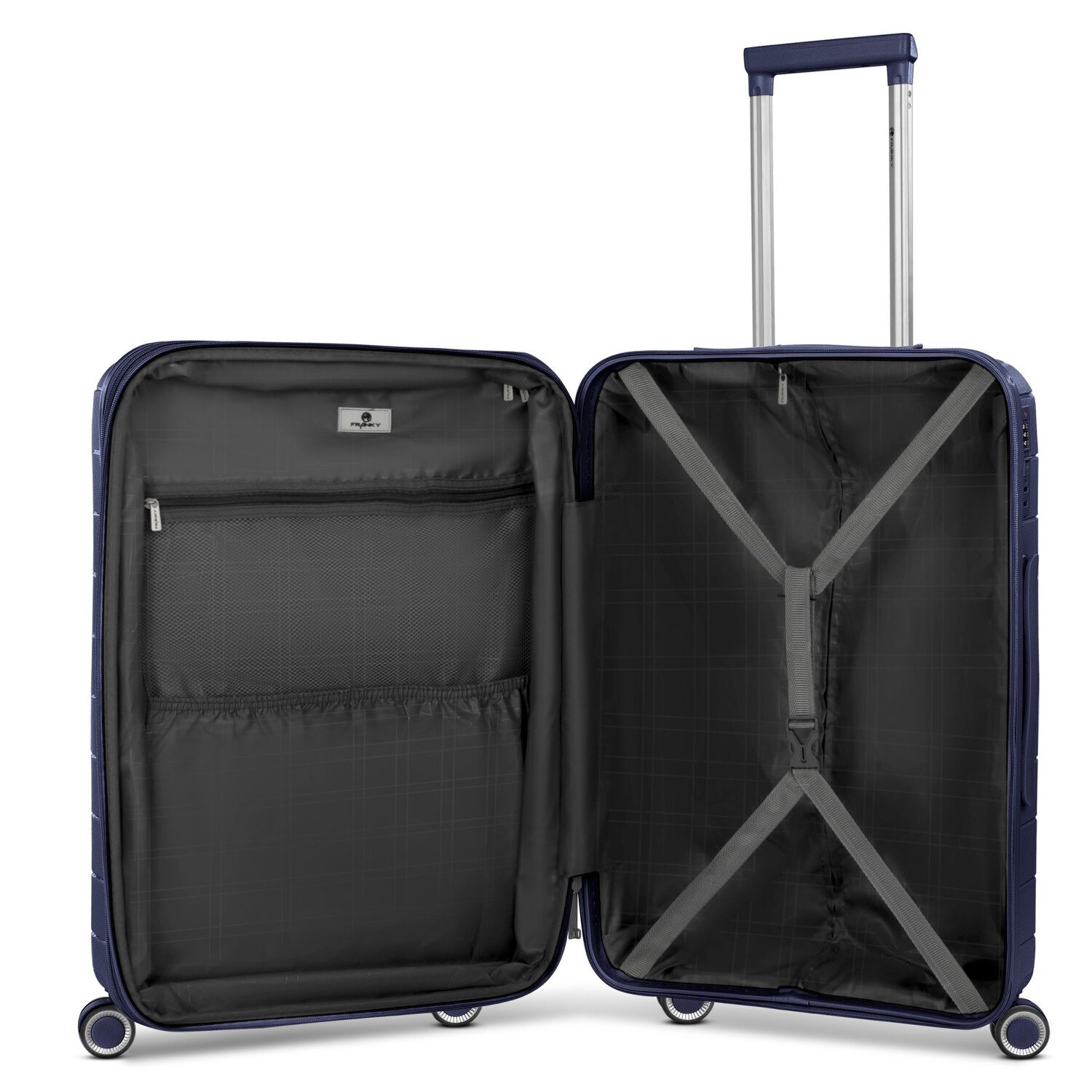 - Ausstattung: Wäschefach, Tasche(n) innen, Reißverschlussfach, Kreuzpackgurt, Dehnfalte, arretierbarer Griff