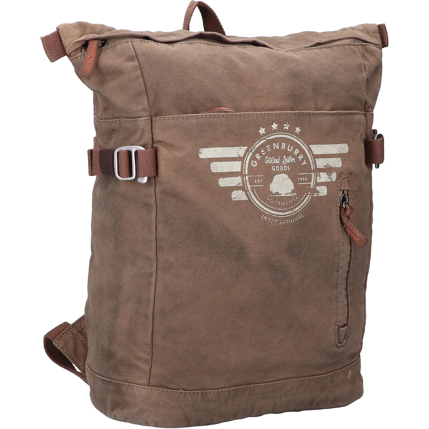 Schöner Kurierrucksack von Greenburry der Aviator Serie aus hochwertigem Baumwolle mit Lederbesatz. Das Hauptfach bietet viel Platz für Unterlagen sowie für ihre Wertsachen und ist mit einem gepolstertem Tablet-/Laptopfach und einem Reißverschlussfach ausgestattet. Weiteren Stauraum bieten die zwei Vorfächer und das Reißverschlussfach auf der Rückseite. Der ideale Begleiter für den Alltag, in der Uni und der Schule.