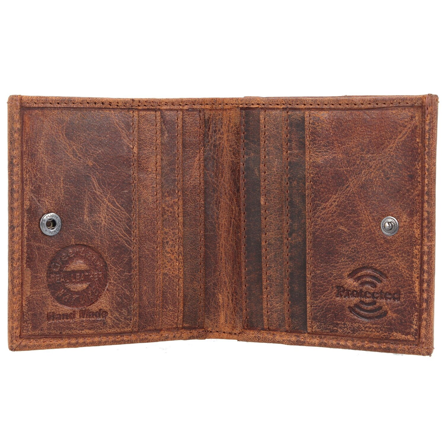 Vintage Design, eine durchdachte Innenstruktur und robustes Leder zeichnen diese Geldbörse von Greenland Nature aus. Mit Fächern für Kreditkarten und Münzen aber auch RFID-Schutz gegen Datendiebstahl.
