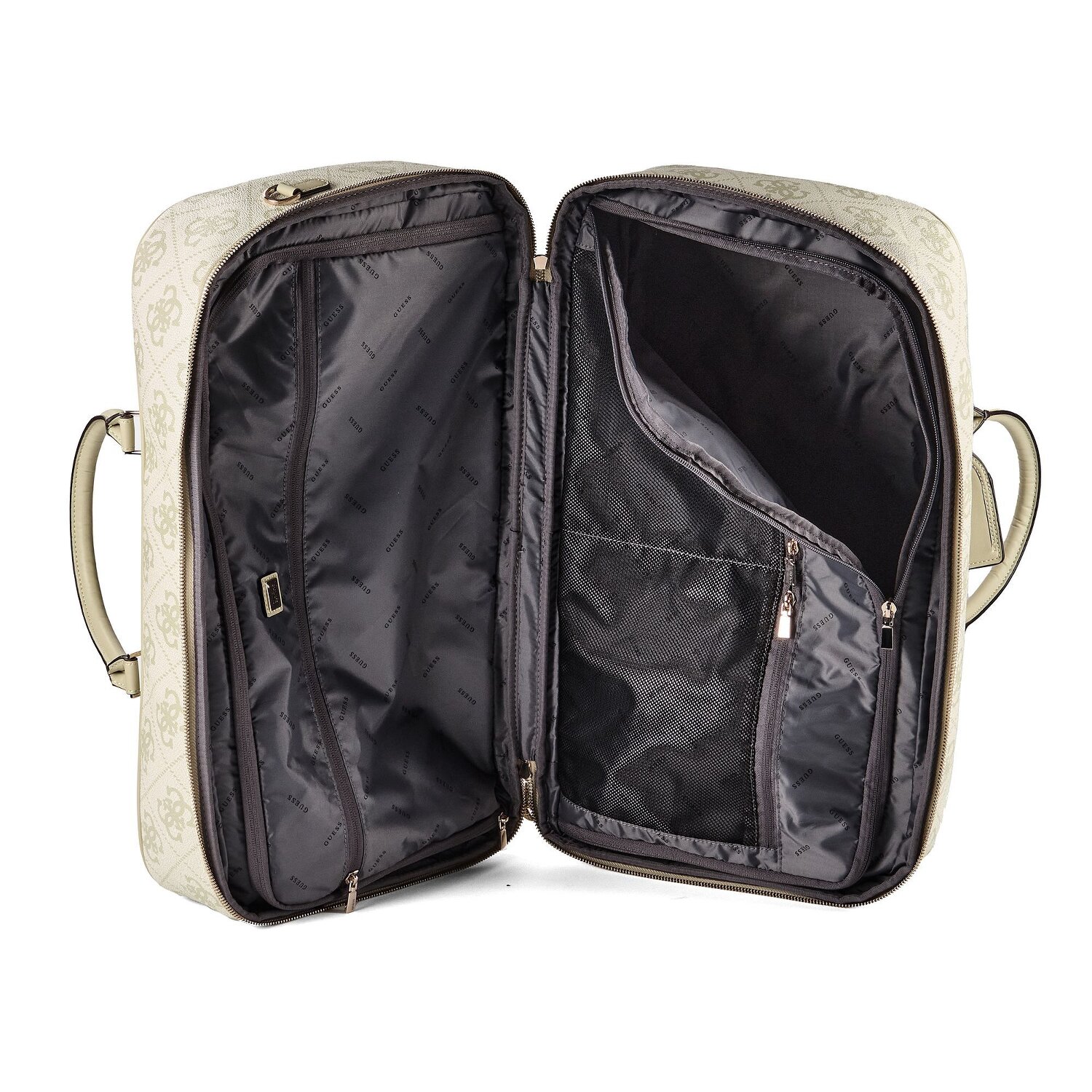 - Ausstattung: Wäschefach, Reißverschlussfach, Netzfach, auf Trolley steckbar