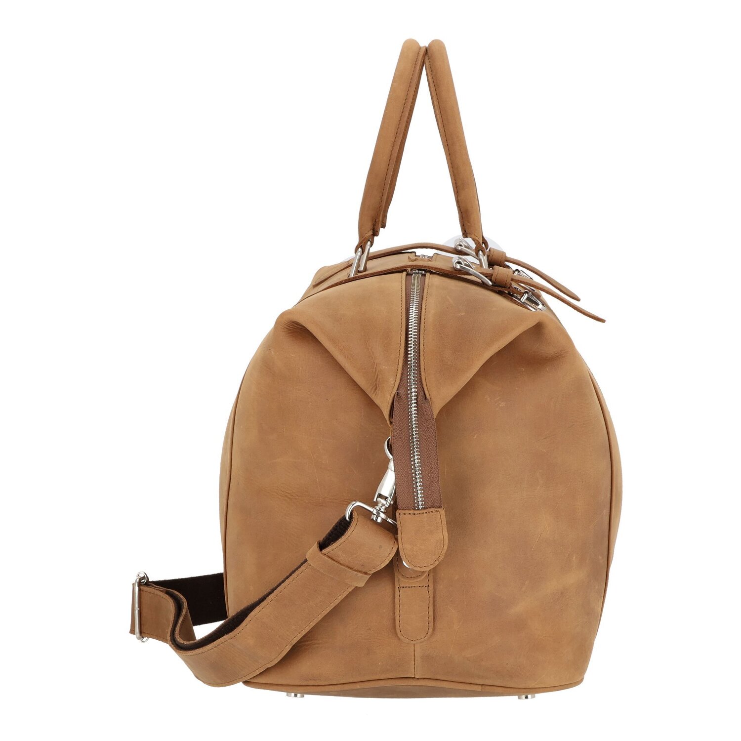 Entdecken Sie die luxuriöse Weekender Reisetasche von Harolds, aus hochwertigem, pflanzlich gegerbtem Leder mit der markanten Optik und dem ganz besonderem Tragegefühl. Mit einem großzügigen Innenraum inklusive Reißverschlussfach und Dehnfalte sowie einem verstellbaren Umhängeriemen bietet sie erstklassigen Stil und Komfort für Damen und Herren auf Reisen.
