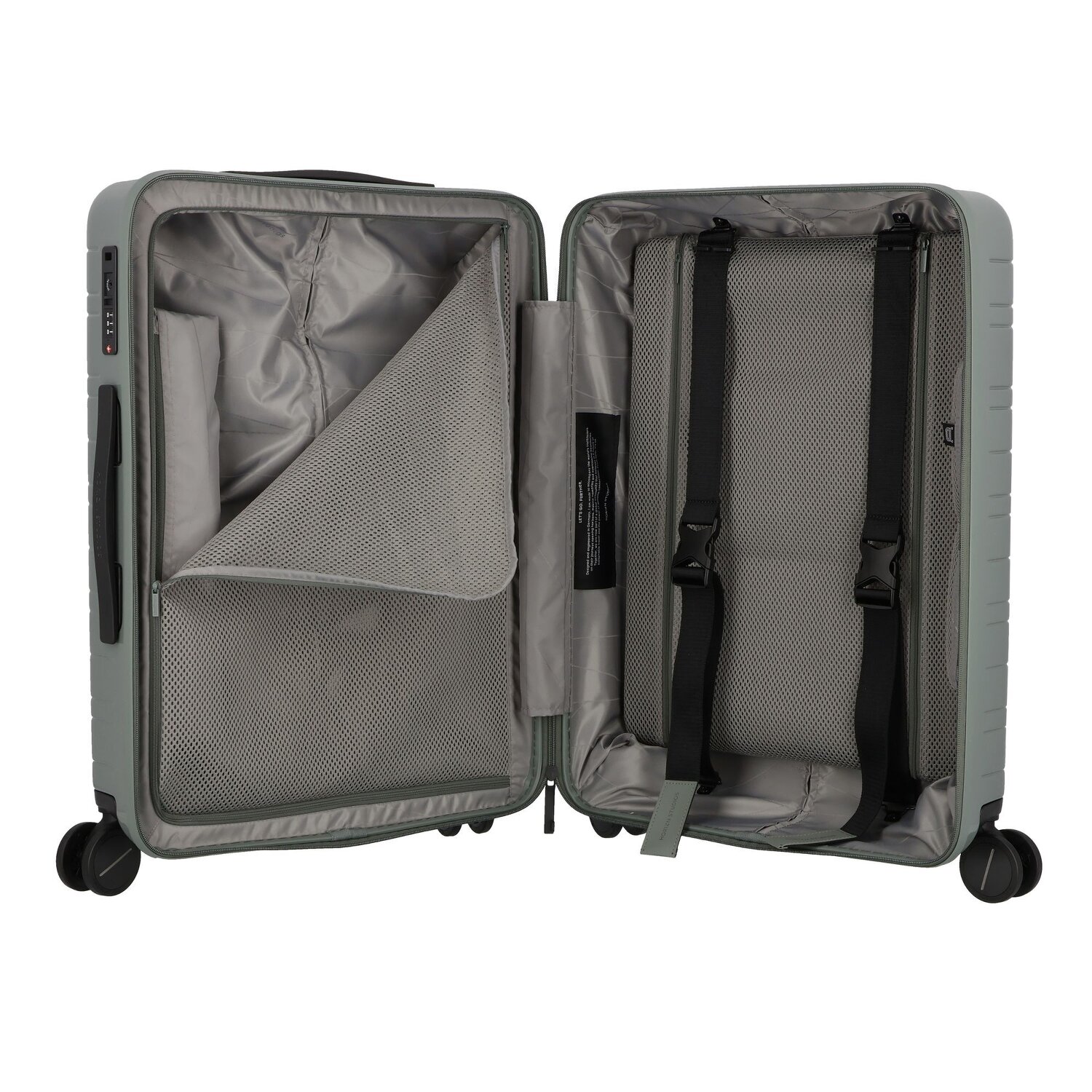 - Ausstattung: Wäschefach, Reißverschlussfach, arretierbarer Griff, Anschluss für USB-Powerbank