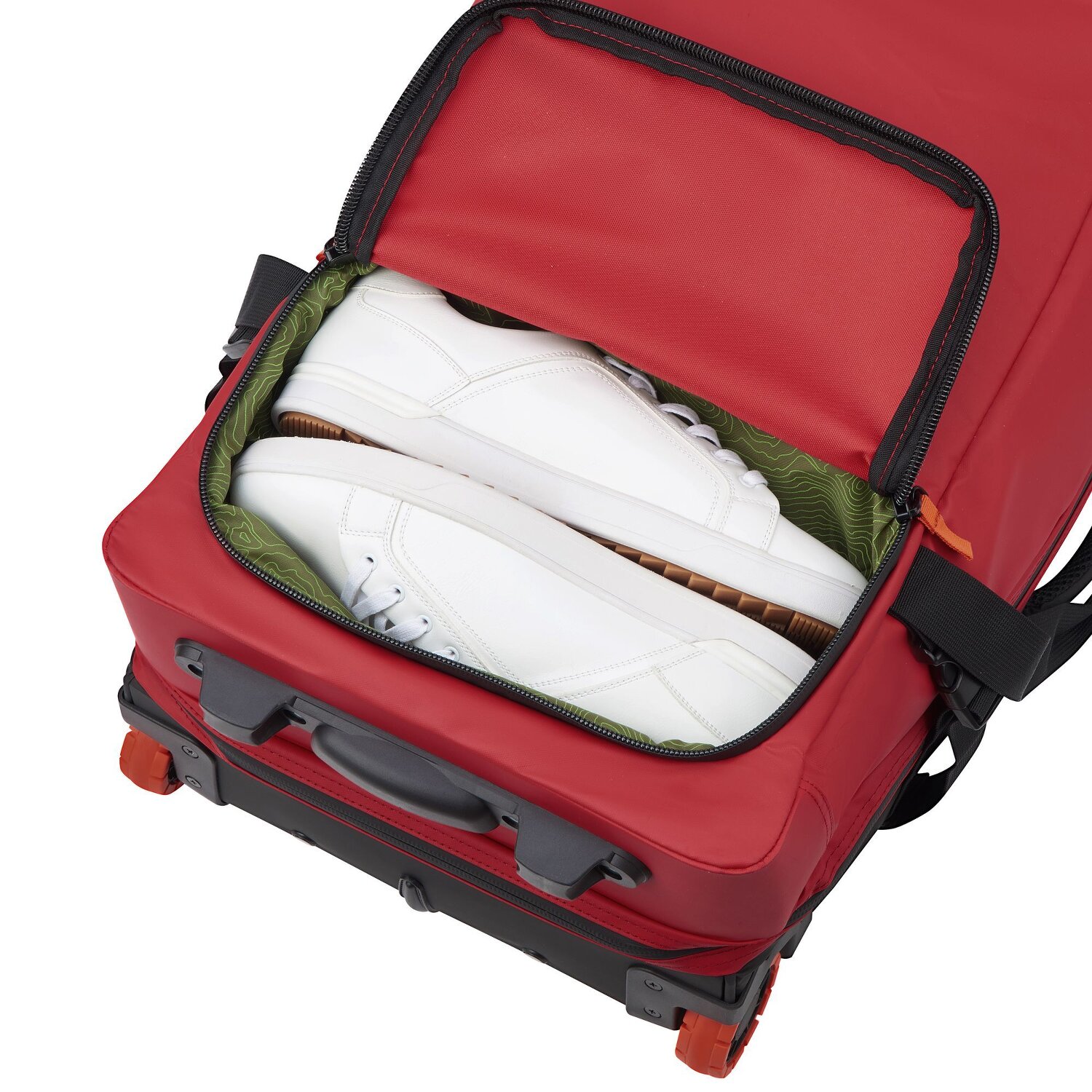 - Ausstattung: Wäschefach, Kompressionsriemen, arretierbarer Griff