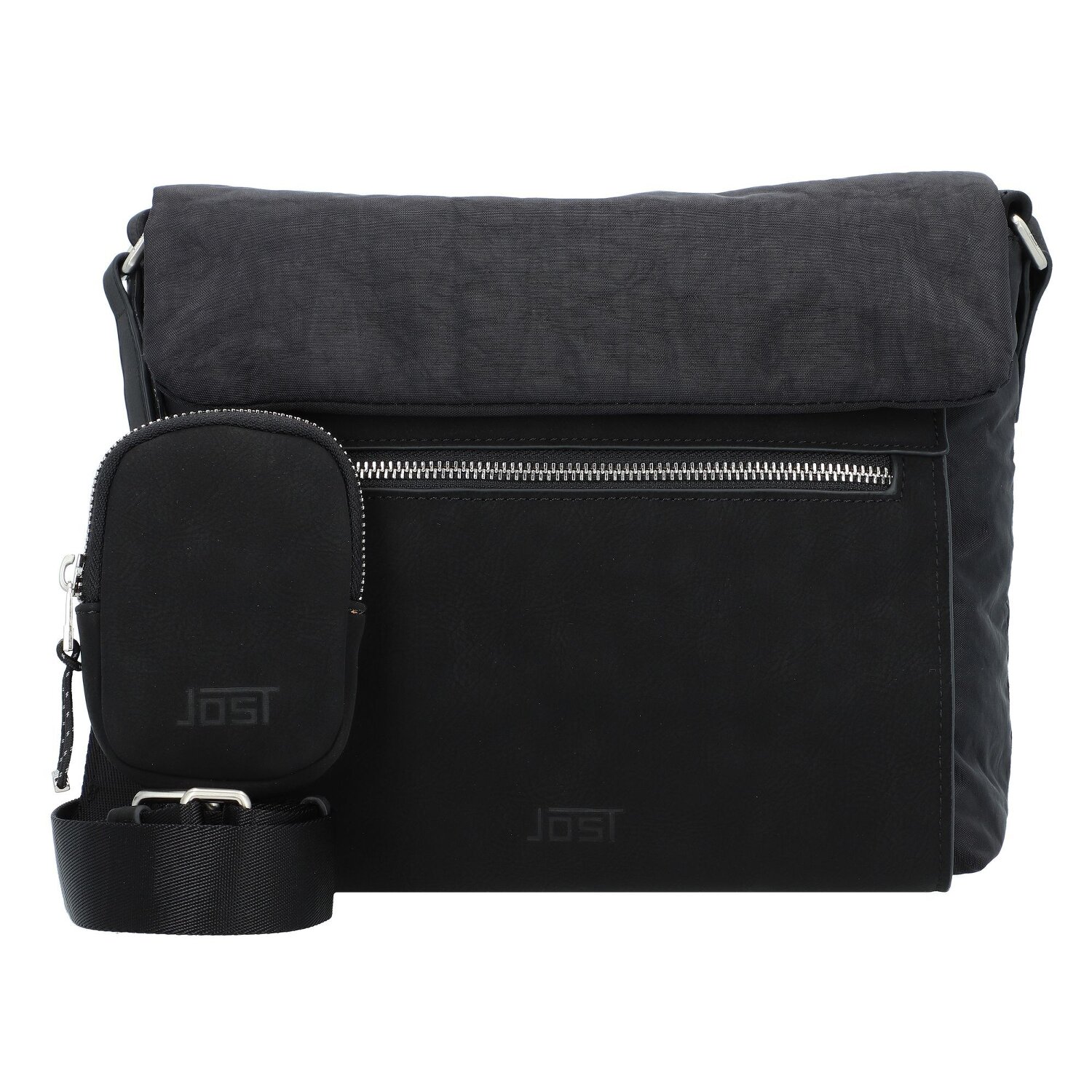 Moderne Umhängetasche von Jost. Im Inneren befinden sich zwei Reißverschlussfächer und ein Steckfach. Die Tasche besticht durch ihre praktische Form und Funktionalität. Der praktische und gleichzeitig stylische Begleiter.