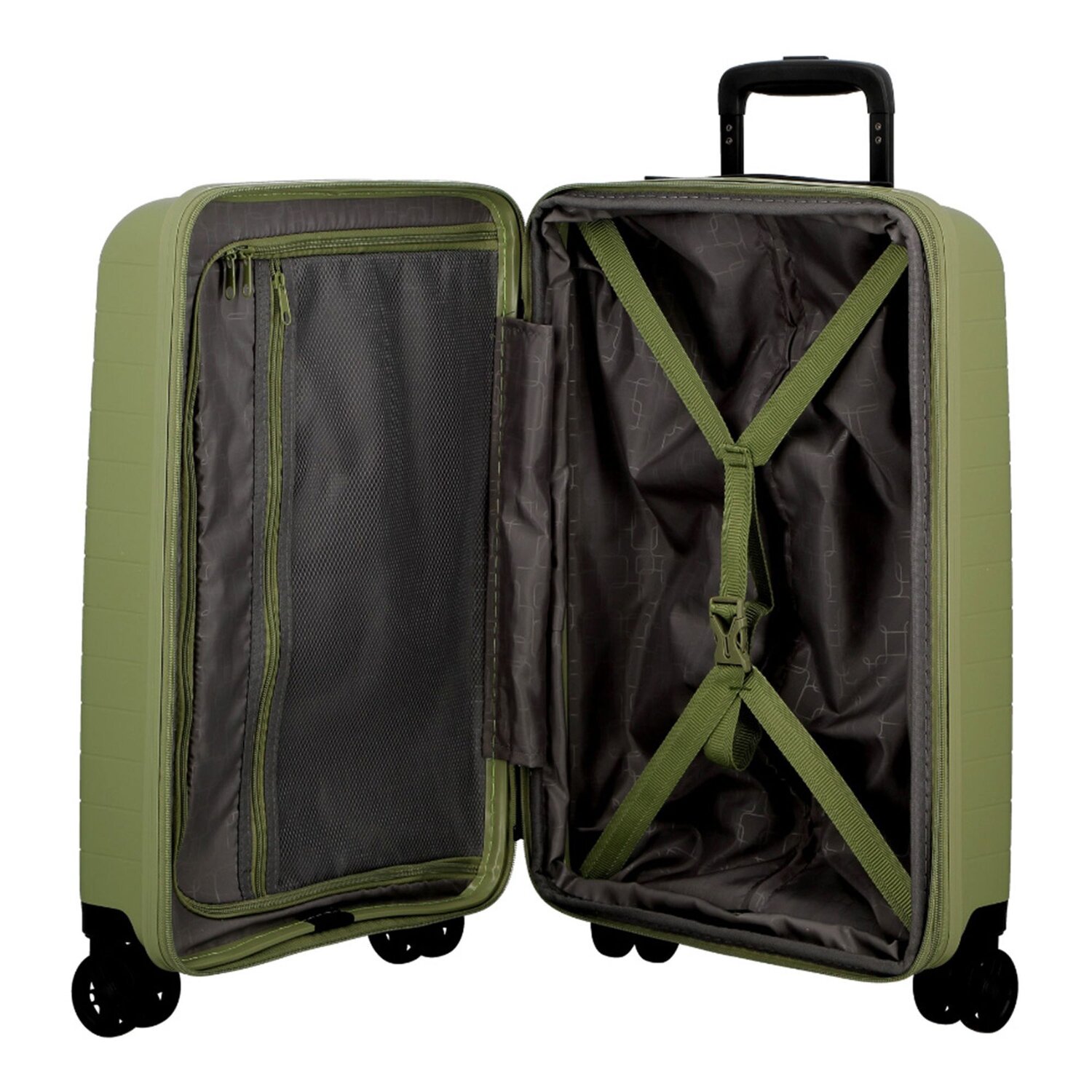 - Ausstattung: Wäschefach, Reißverschlussfach, Kreuzpackgurt, Dehnfalte, arretierbarer Griff
