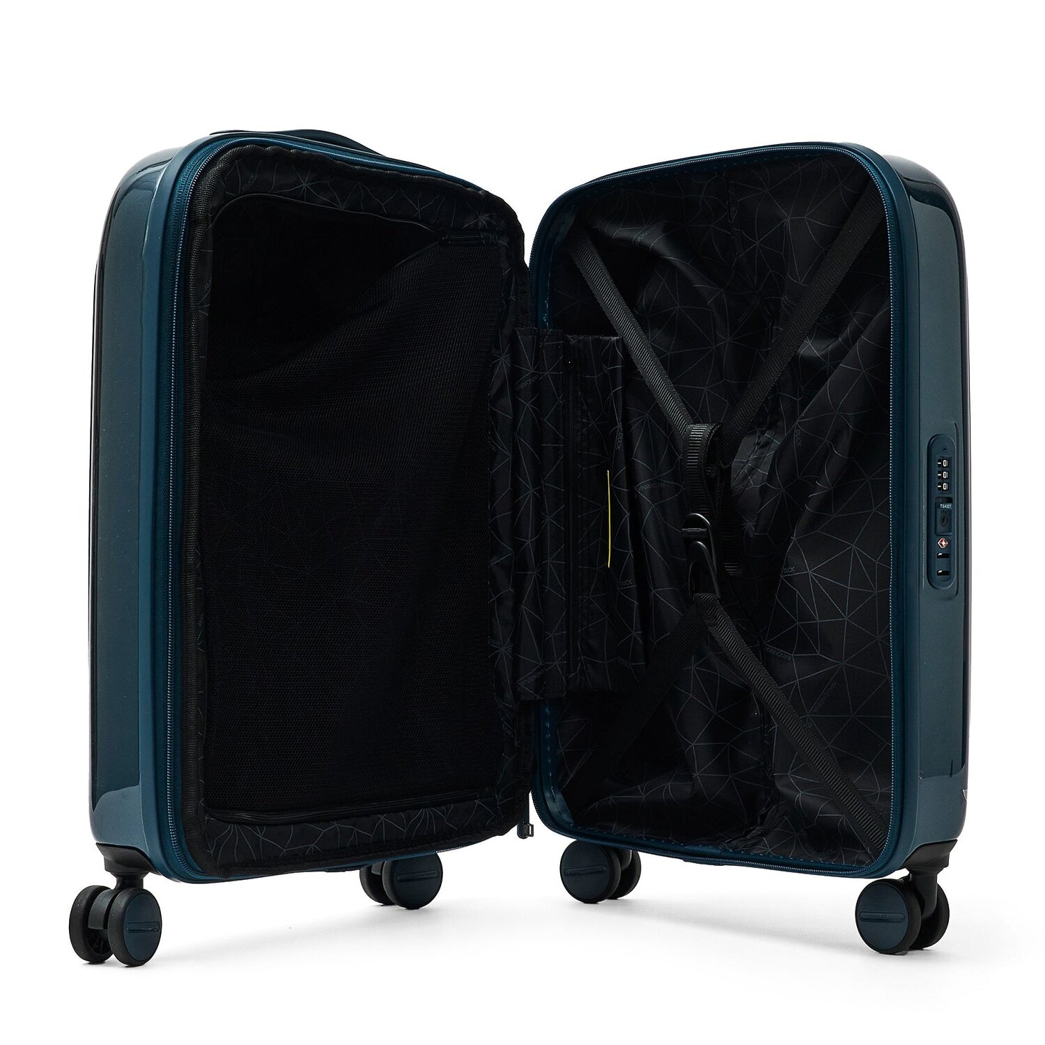 Bühne frei für den Mandarina Duck Trolley der Serie Logoduck + Metal, ein Statement von Funktionalität und Stil. Gefertigt aus robustem Polycarbonat, kombiniert dieses Reiseaccessoire Langlebigkeit und Design. Ausgestattet mit vier Rollen, Wäschefach, Dehnfalte, arretierbarem Griff, Kreuzpackgurt und Reißverschlussfach wird Ordnung und Komfort auf Ihrer Reise groß geschrieben. Mit im Gepäck: ein diskret integriertes TSA-Schloss für zusätzliche Sicherheit. Der Adressanhänger und Tragegriff garantieren eine angenehme Handhabung – so wird Reisen zum Vergnügen. Zögern Sie nicht, diesen zuverlässigen Reisebegleiter zu wählen, der Funktionalität und Ästhetik vereint. Dank der Dehnfalte lässt sich der Koffer auf eine Breite von 23 cm erweitern.