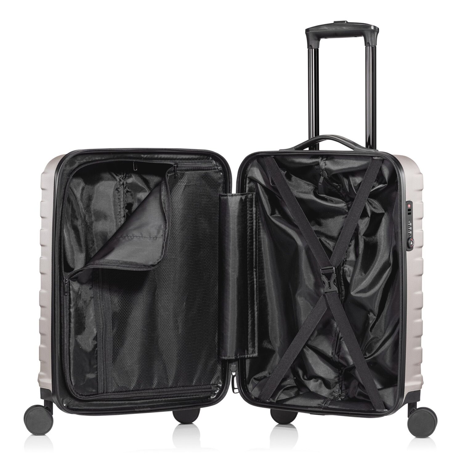 - Ausstattung: Wäschefach, Reißverschlussfach, Kreuzpackgurt, arretierbarer Griff