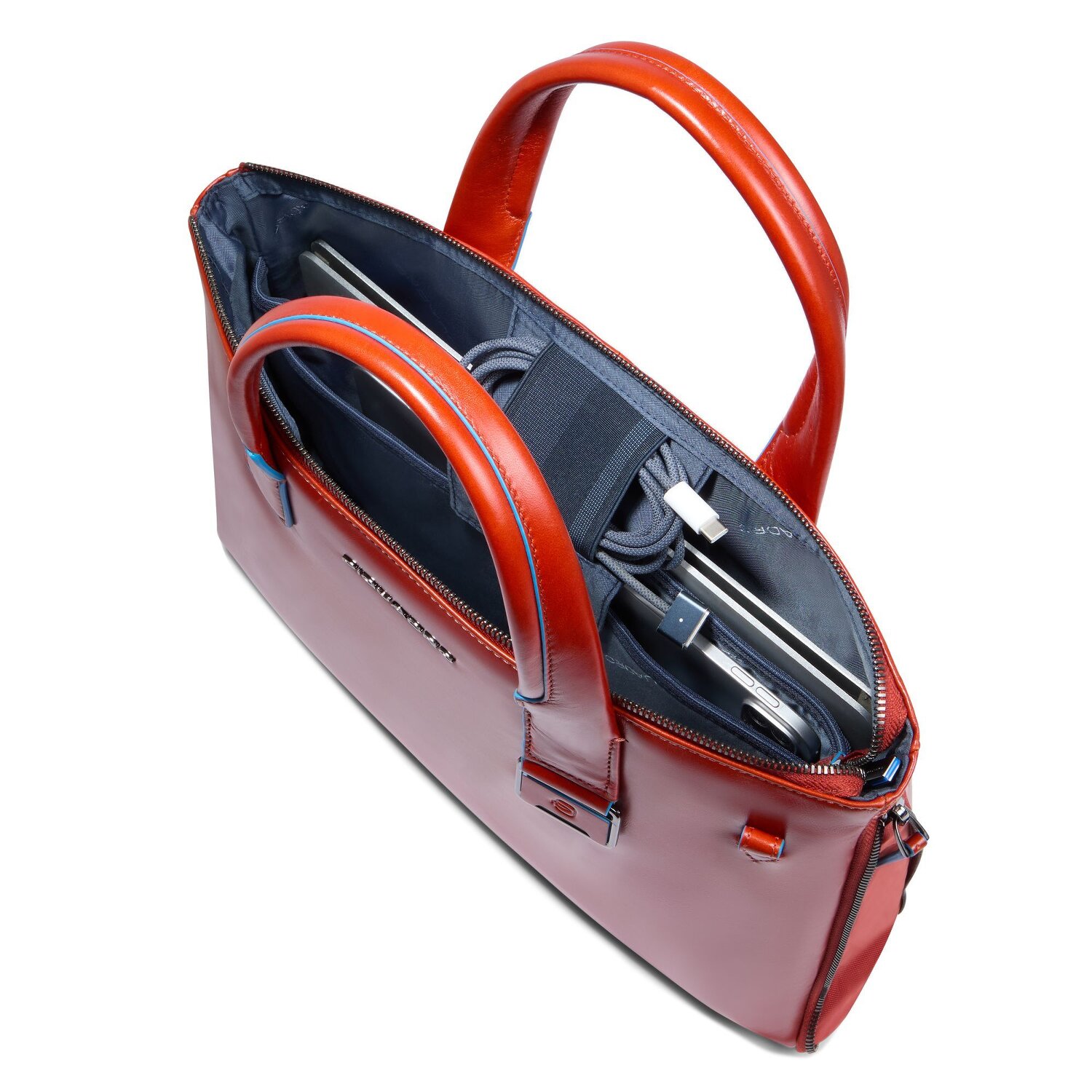 Piquadro Blue Square Shopper Tasche Leder 38 cm Laptopfach mit Dehnfalte