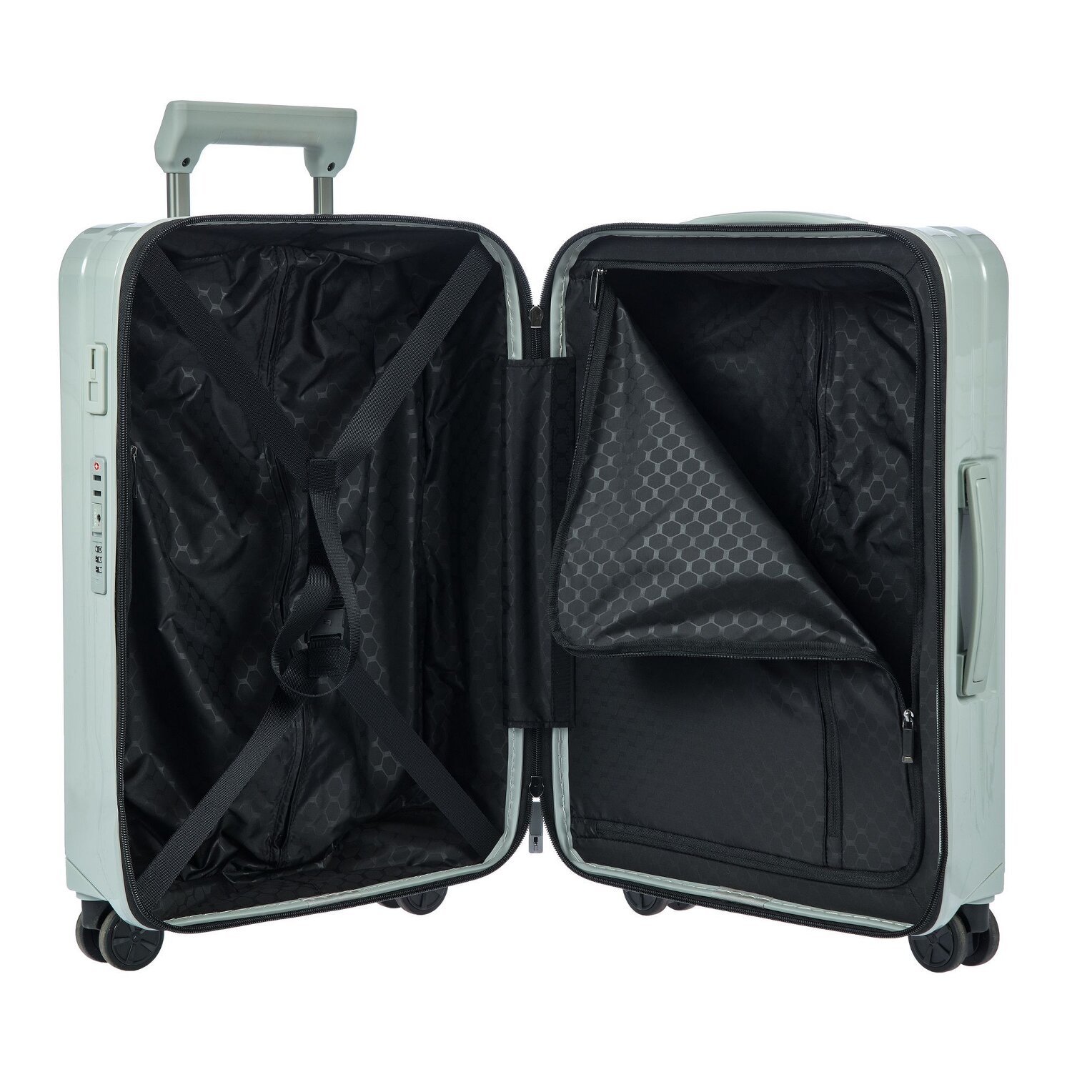 - Ausstattung: Wäschefach, Trenn-/Packplatte, Reißverschlussfach, Kreuzpackgurt, arretierbarer Griff
