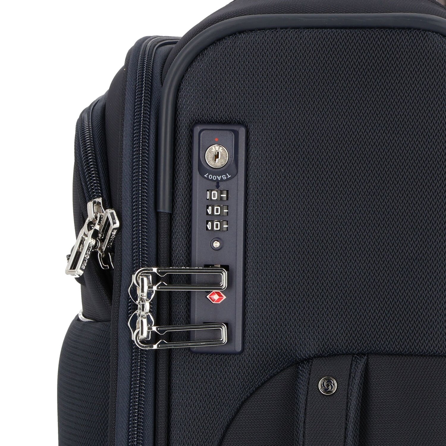 Hochwertiger 4-Rollen-Kabinentrolley von Samsonite aus robustem Nylon mit arretierbarem Teleskopgriff. Der Trolley zeichnet sich durch formschönes Design und hohe Verarbeitungsqualität aus. Er bietet ein geräumiges Hauptfach, ein großes Hemdenfach, zwei weiteren Nebenfächer und zwei Packriemen. So lässt sich alles übersichtlich verstauen. Der komfortable Begleiter für die nächste Reise.