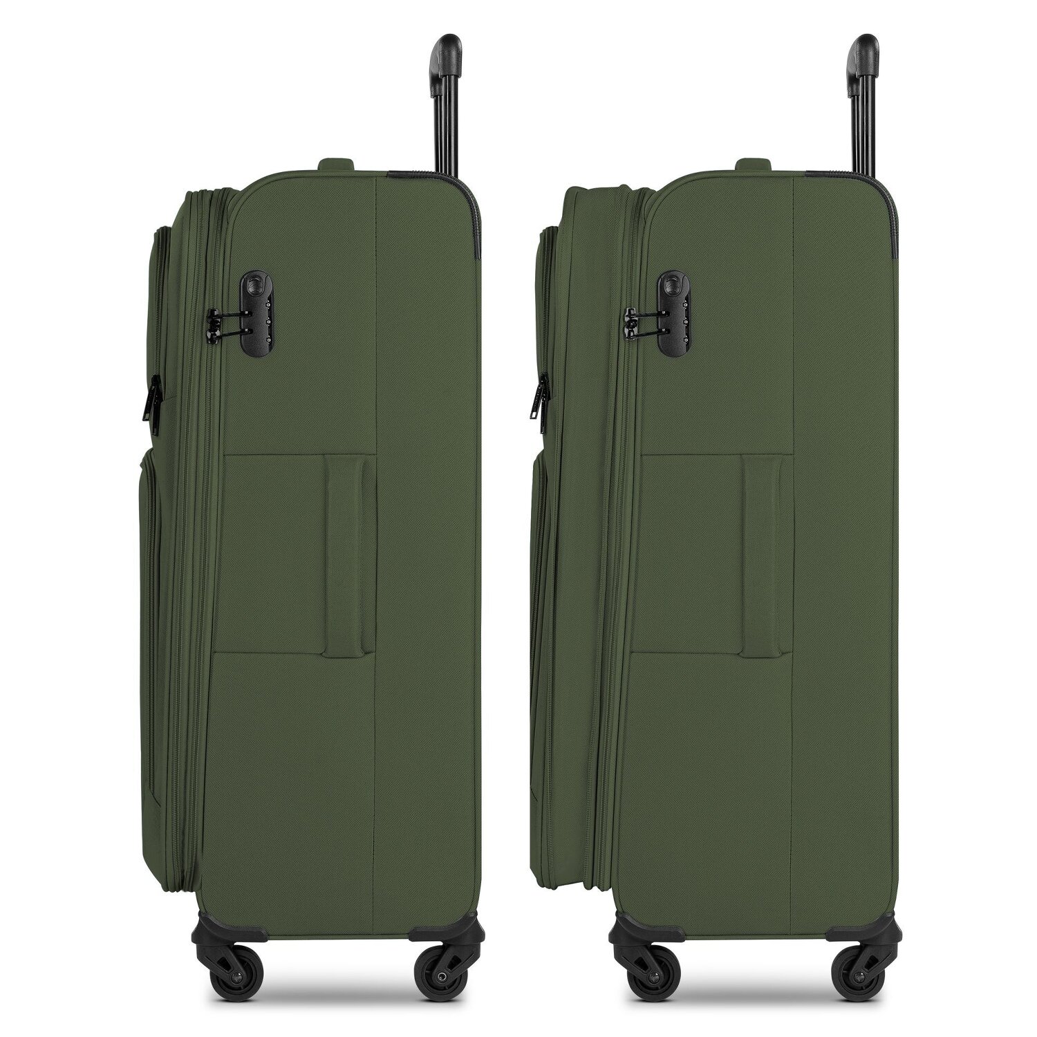 - Ausstattung: Wäschefach, Tasche(n) außen, Reißverschlussfach, Dehnfalte, arretierbarer Griff