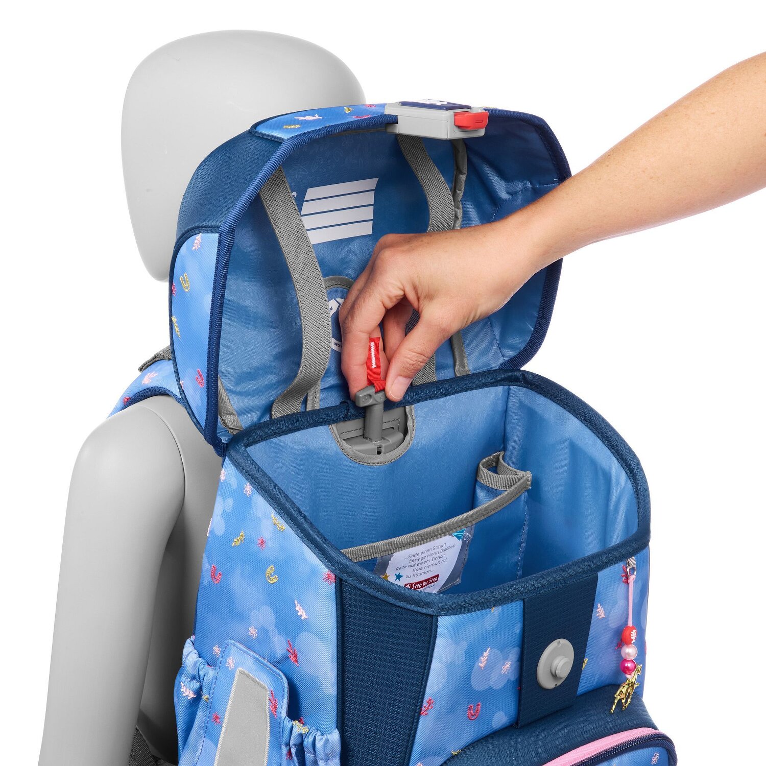 - Extras: verdecktes Adressschild, Tragegriff, Reflektoren, Fächer für A4 Unterlagen