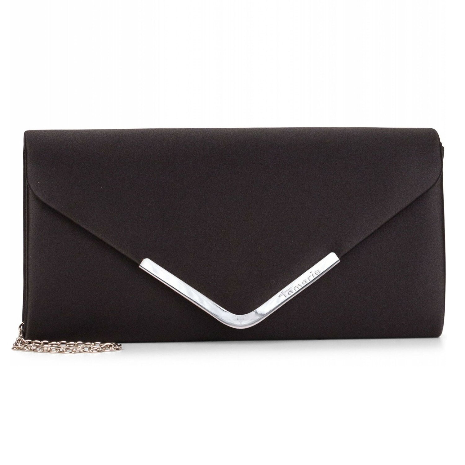 Elegante Clutch Tasche von Tamaris besticht durch ihr klassisches Design und bietet trotz ihre handlichen Größe genügend Platz. Eine glänzende Umhängekette rundet Gesamtbild ab und macht die Tasche zum echten Hingucker. Ideal für den festlichen Abend.
