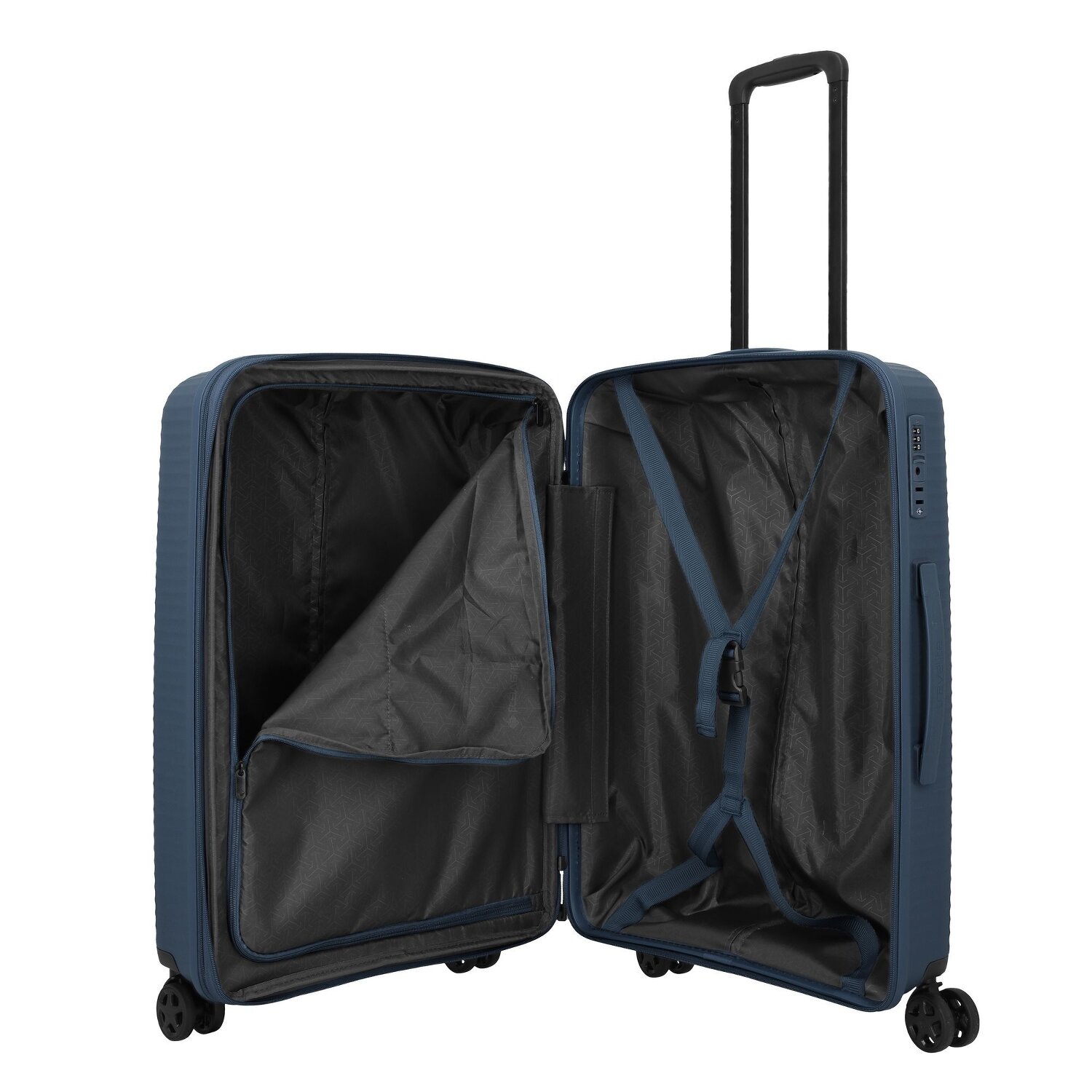 • Ausstattung: Wäschefach, Reißverschlussfach, Kreuzpackgurt, Dehnfalte, arretierbarer Griff