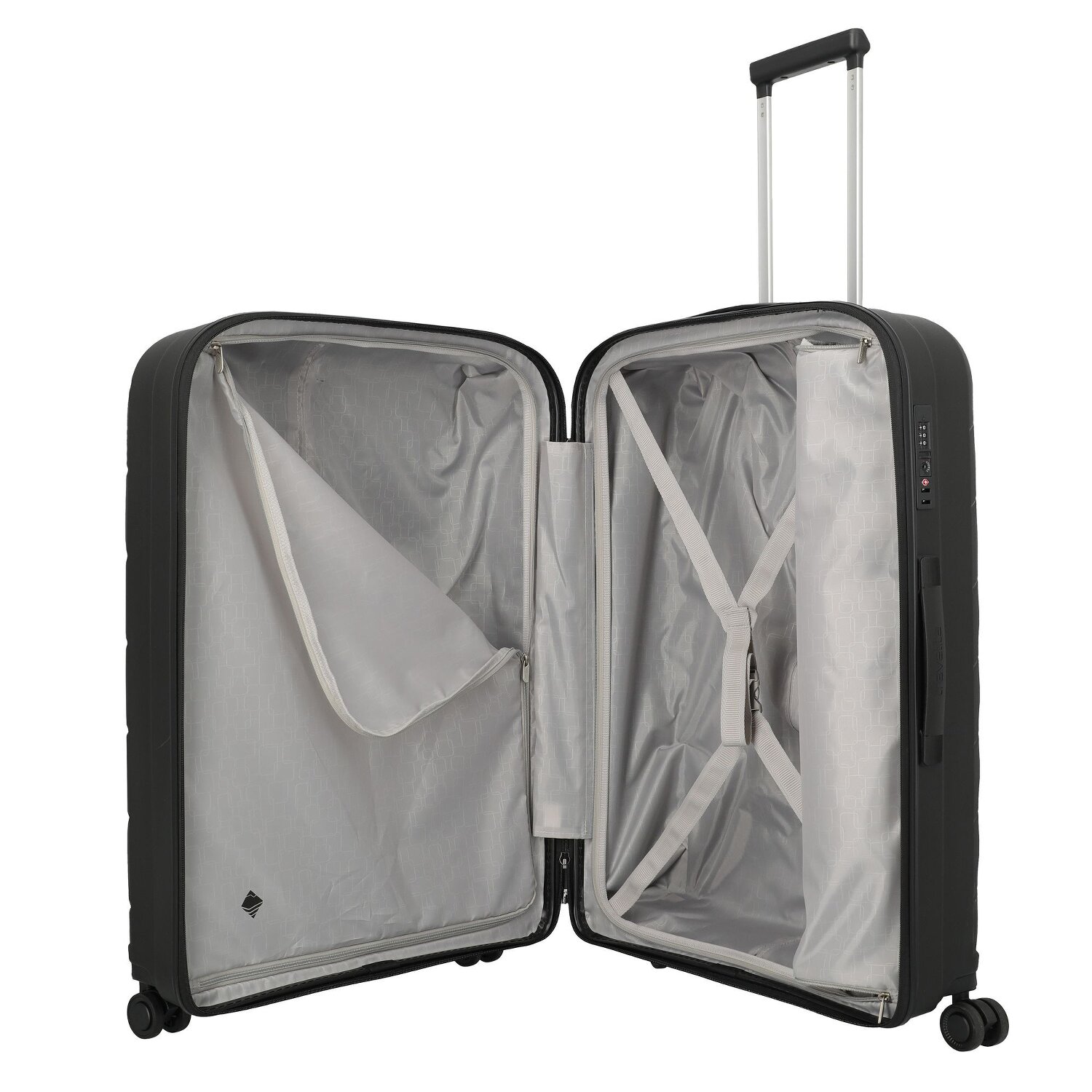 - Ausstattung: Wäschefach, Kreuzpackgurt, Dehnfalte, arretierbarer Griff