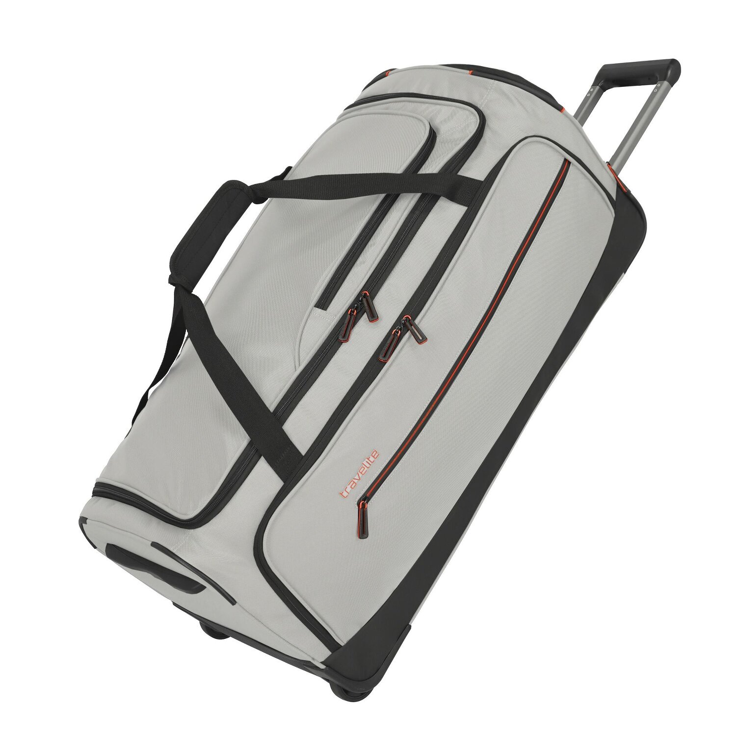- Ausstattung: Tasche(n) außen, Reißverschlussfach, arretierbarer Griff