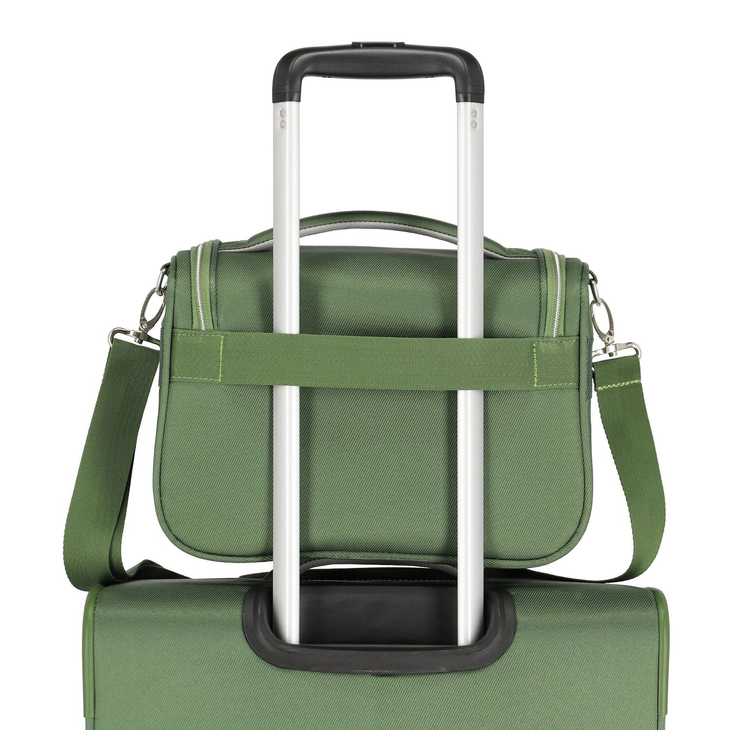 - Ausstattung: Tasche(n) innen, Tasche(n) außen, Reißverschlussfach, auf Trolley steckbar