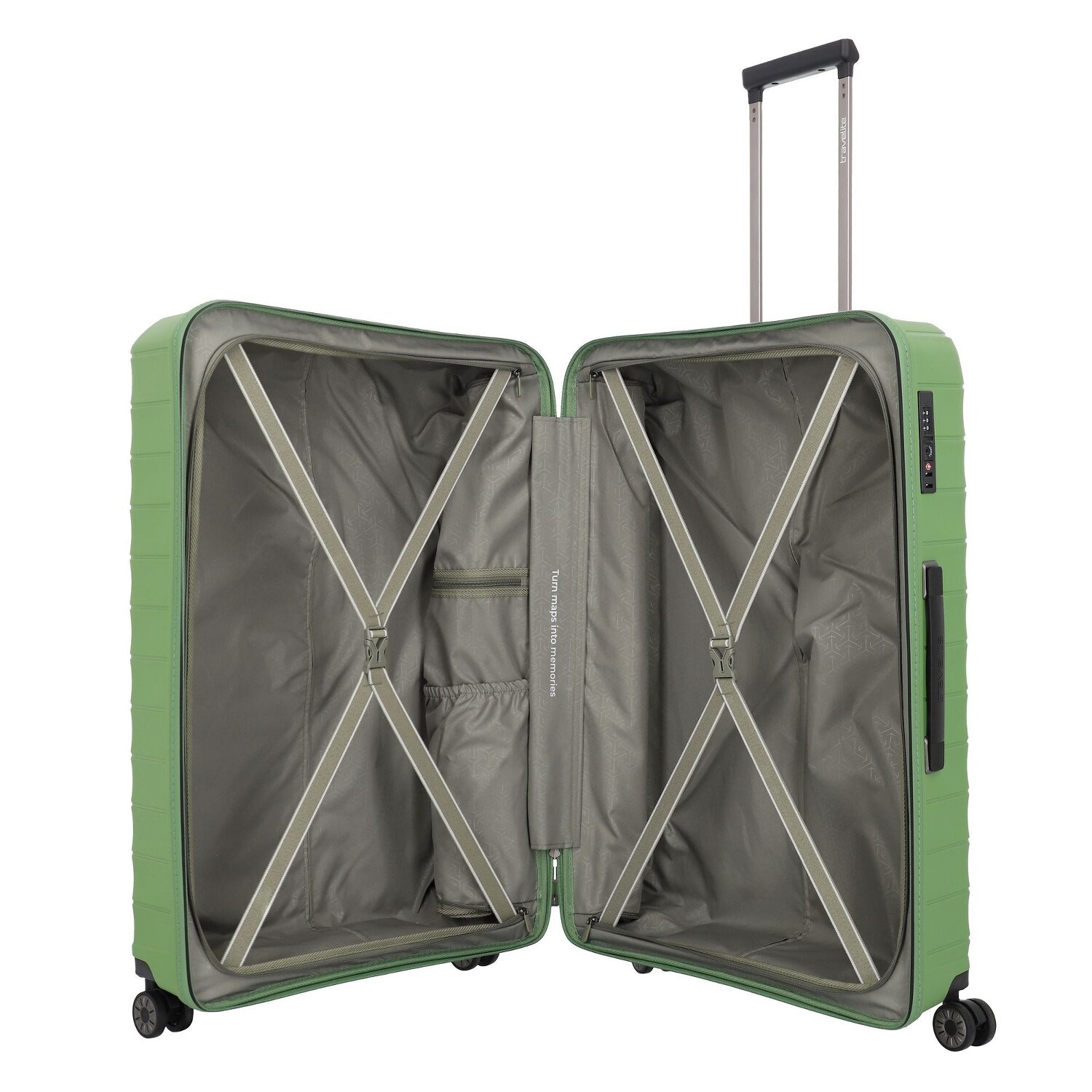 - Ausstattung: Wäschefach, Tasche(n) innen, Reißverschlussfach, Kreuzpackgurt, arretierbarer Griff