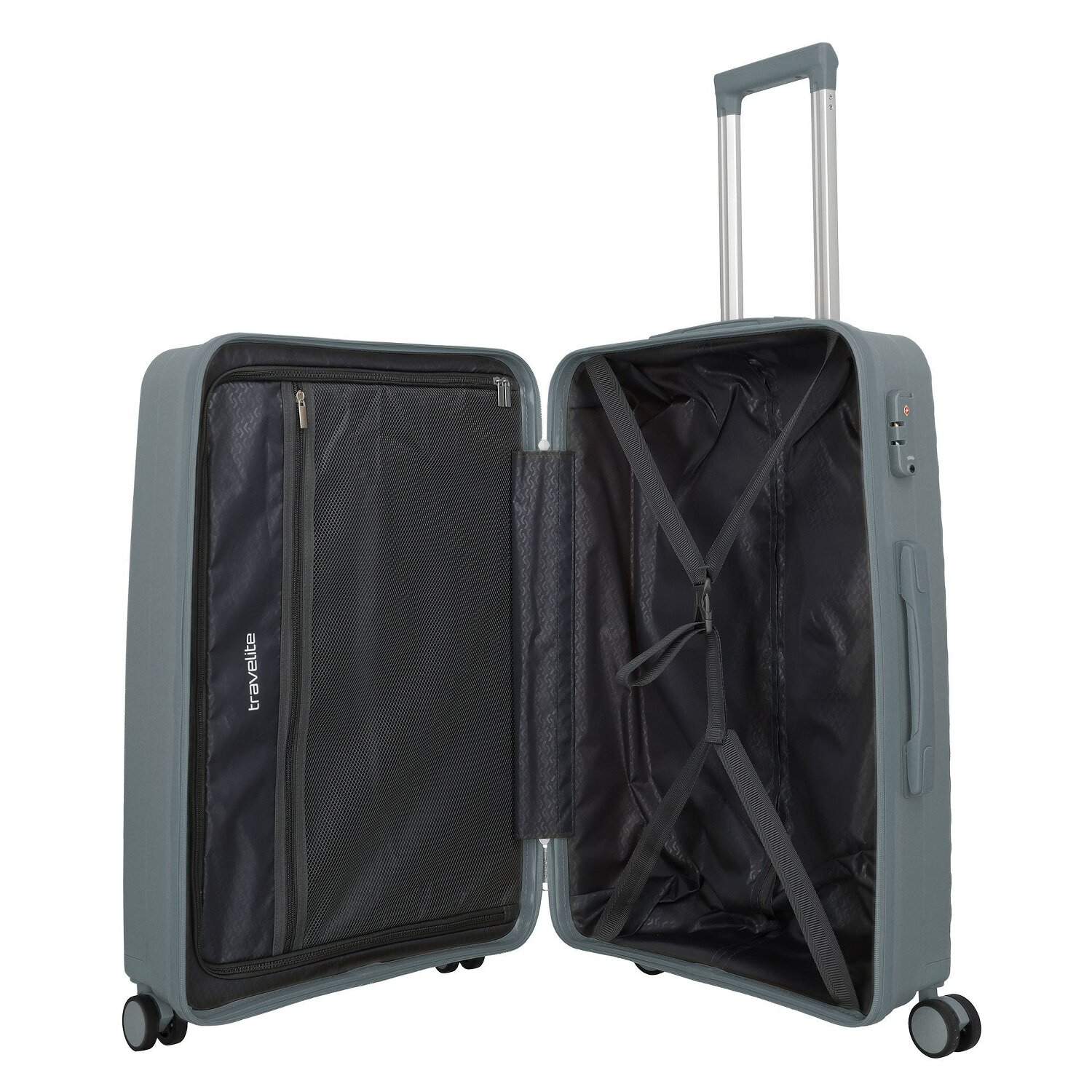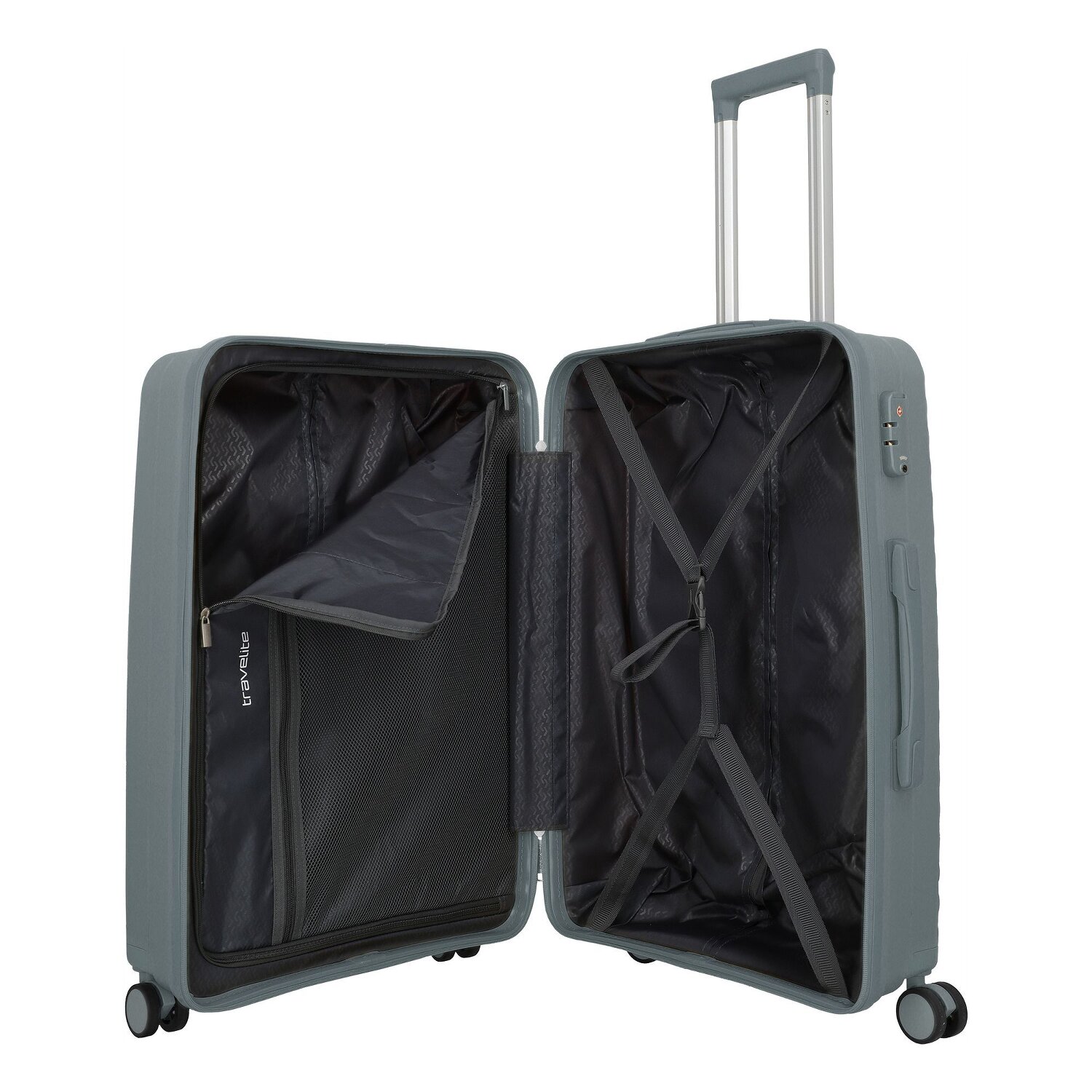 - Ausstattung: Wäschefach, Netzfach, Kreuzpackgurt, arretierbarer Griff