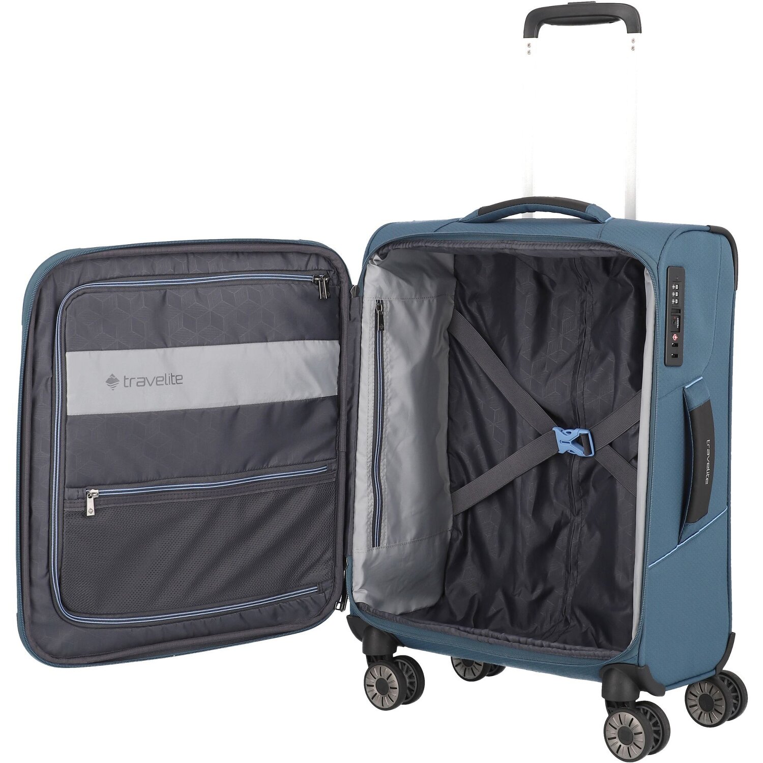 Leichtgewichtigkeit, Nachhaltigkeit und praktische Innenaufteilung zeichnen diesen robusten Kabinentrolley aus recyceltem Material aus. Mit TSA-Schloss für mehr Sicherheit, sowie einer Dehnfalte für Erweiterung des Packvolumens ist dieser Travelite-Koffer ein praktischer und bequemer Begleiter für jede Reise.