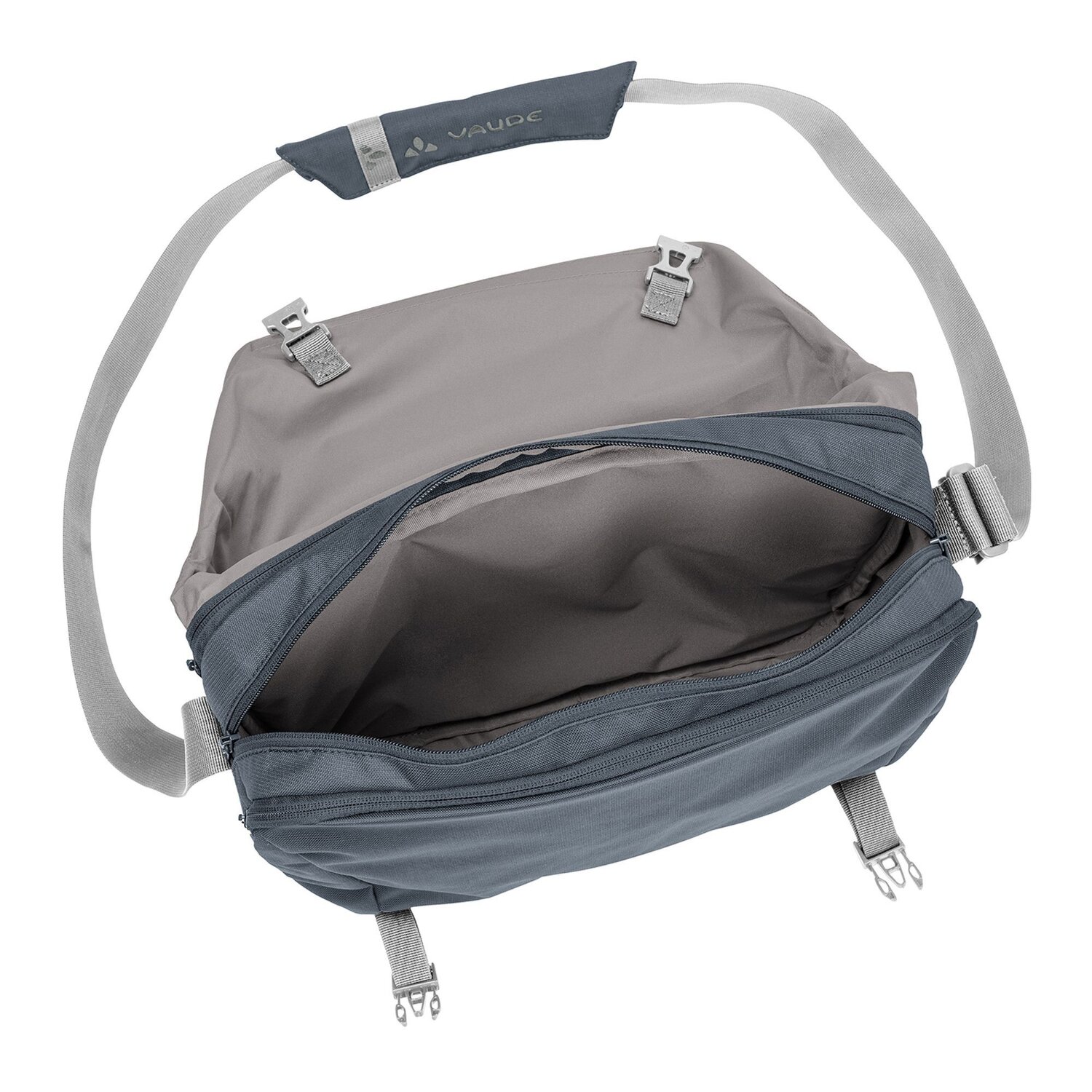 Praktische Umhängetasche von Vaude. Sie verfügt über ein geräumiges Hauptfach, sowie ein weiteres Zipperfach vorne und eines im Überschlag. Im Inneren bietet die Tasche eine gute Aufteilung und außen überzeugt sie durch ihr robustes, wasserabweisendes Material.