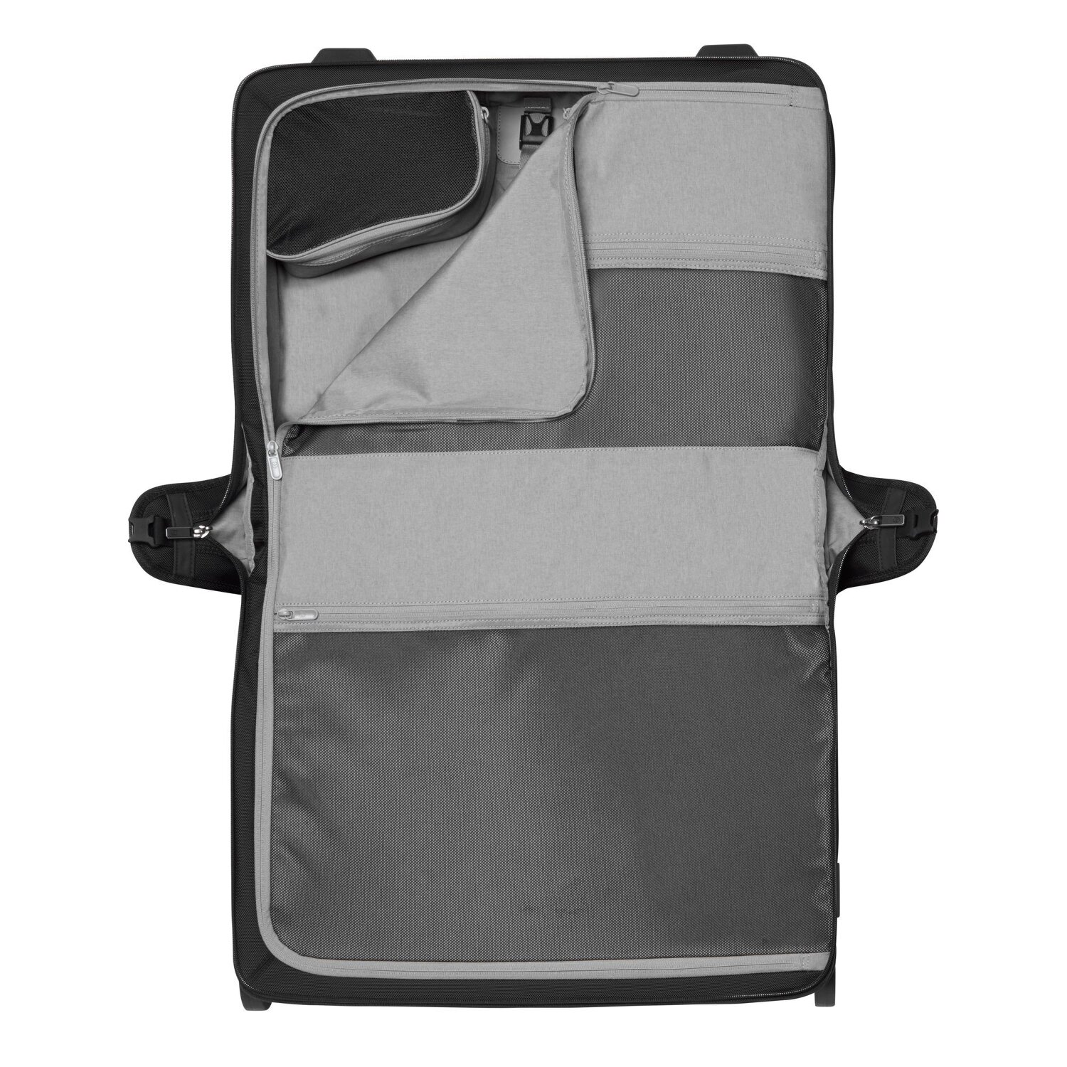 Ein starker und stylischer Kleidersack der Werks Traveler 6.0 Serie von Victorinox mit vielen Verstaumöglichkeiten und einer praktischen Form. Der Kleidersack lässt sich flach ausbreiten und erleichtert somit das Packen. Mit Aufhängehaken und herausnehmbaren Kulturbeuteln bleibt Ihre Kleidung immer knitterfrei.