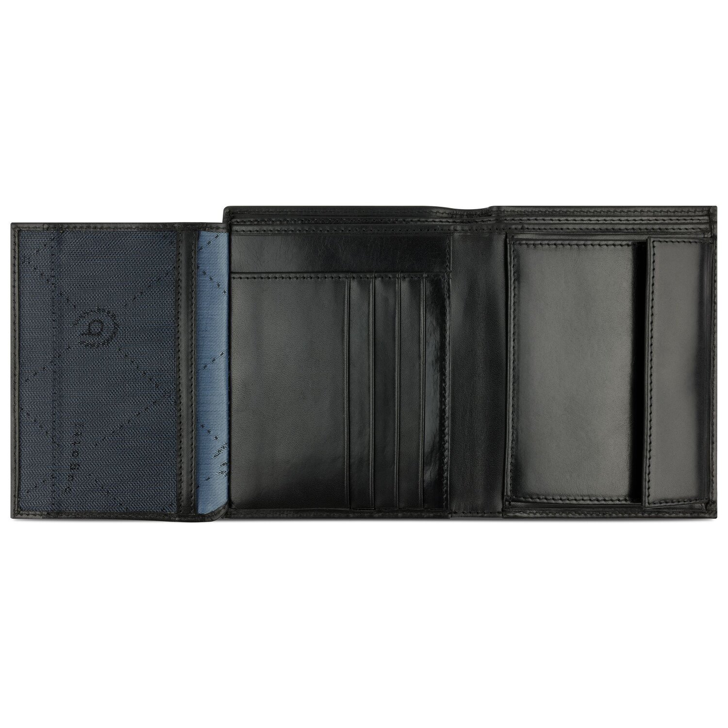 Elegante Ledergeldbörse von Bugatti in der Scheine, Münzen und Karten sinnvoll aufbewahrt werden können.