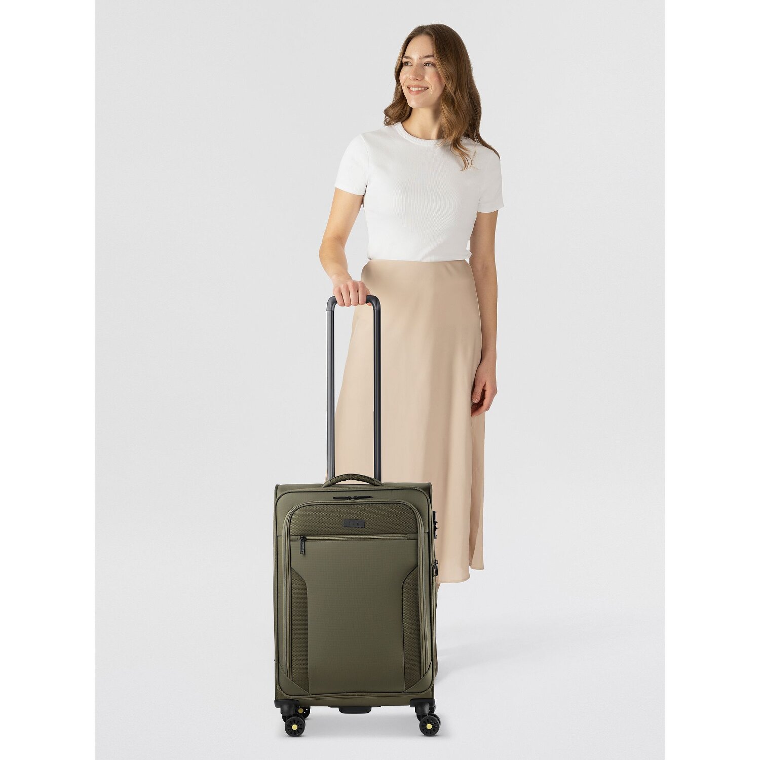 - Ausstattung: Wäschefach, Tasche(n) außen, Dehnfalte, arretierbarer Griff